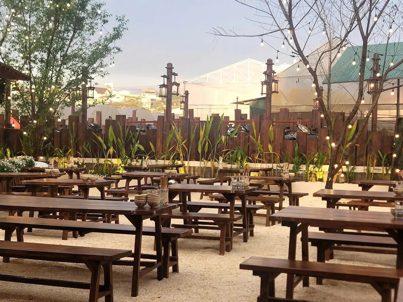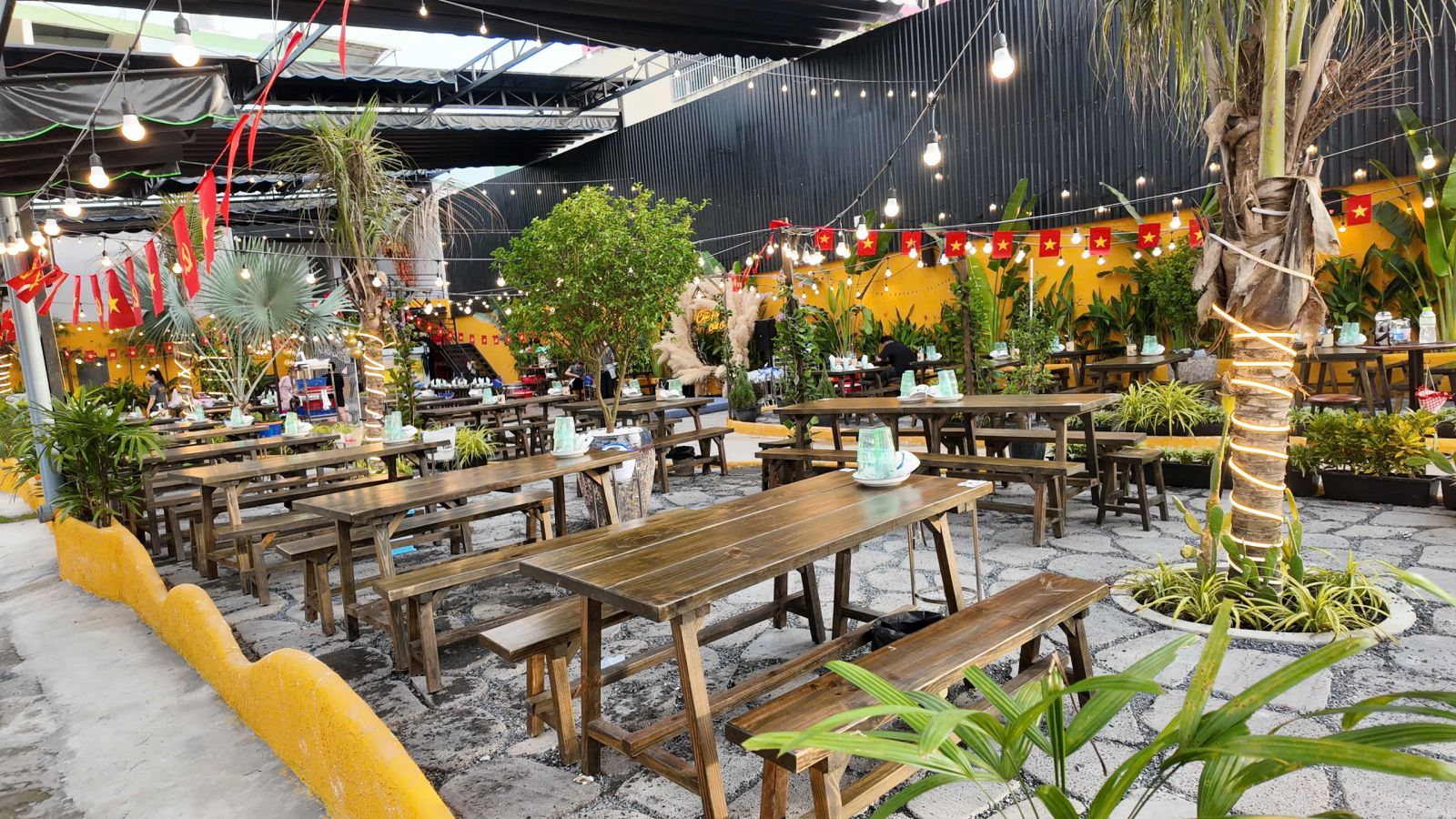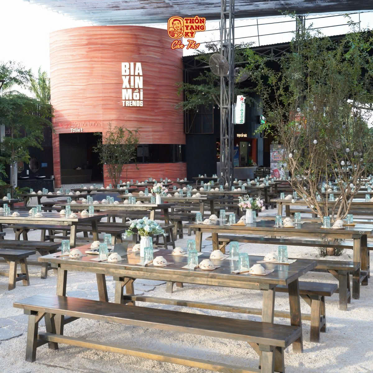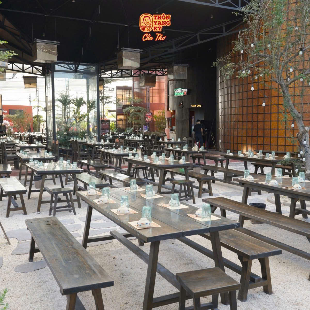 Bộ bàn 2 băng ghế dài 2m là mẫu bàn dài chuyên dùng cho quán nhậu, quán ăn bình dân, khu ẩm thực cần phục vụ nhiều khách cùng lúc. Thiết kế băng ghế liền giúp tối ưu diện tích – giảm số lượng ghế rời – dễ quản lý trong giờ cao điểm.