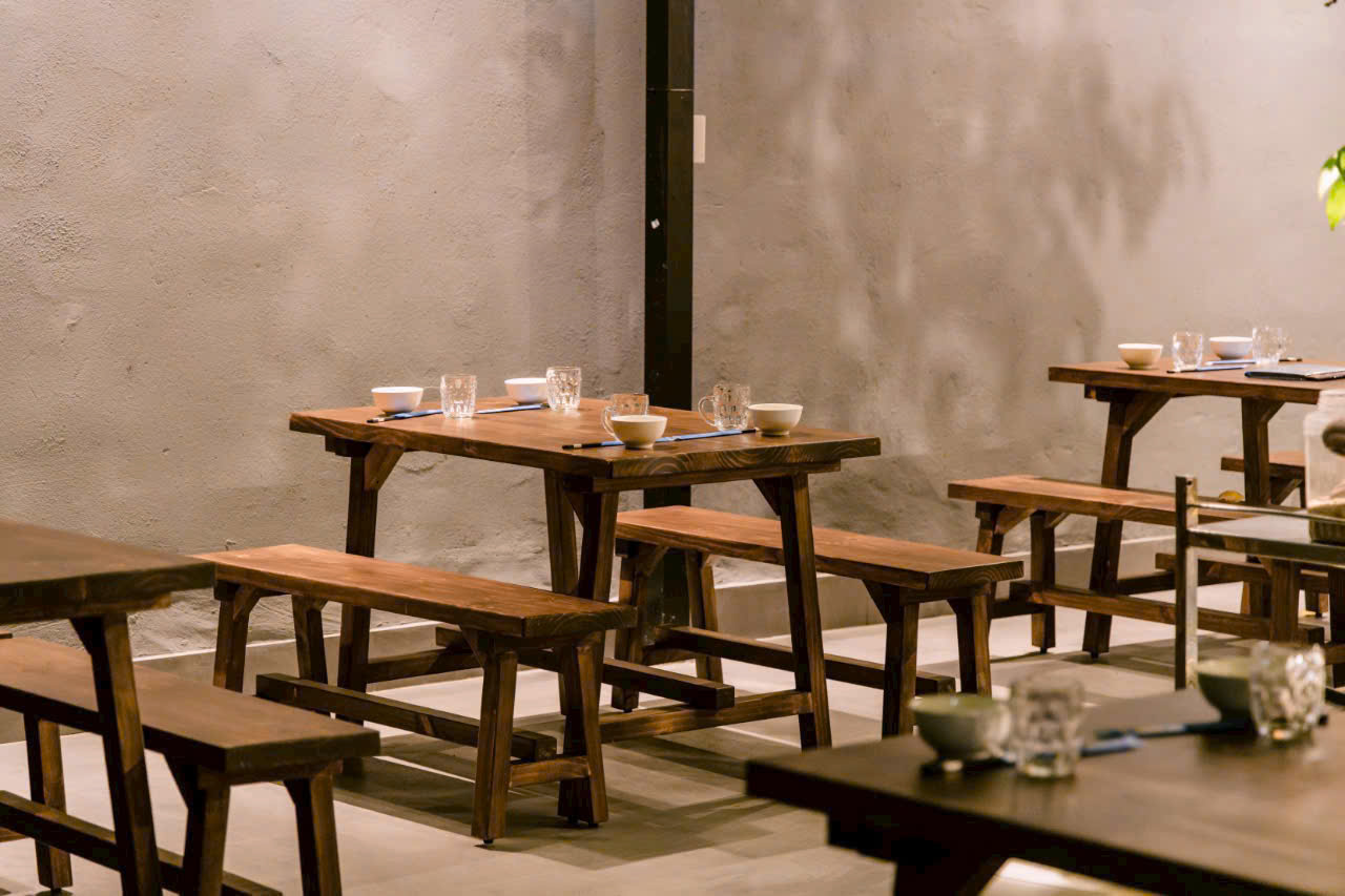 Thẩm mỹ mộc mạc: Màu gỗ sáng tự nhiên, tạo không gian gần gũi, ấm cúng cho thực khách.
